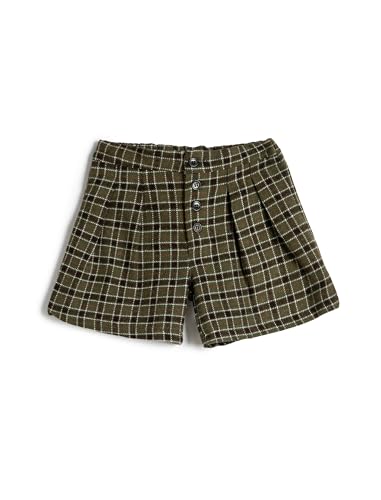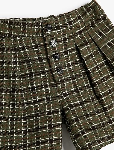 KOTON - شورت تشينو للبنات من كوتون من مزيج من الصوف بتفاصيل أزرار ونقشة مربعات، أكريليك