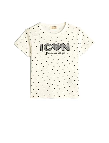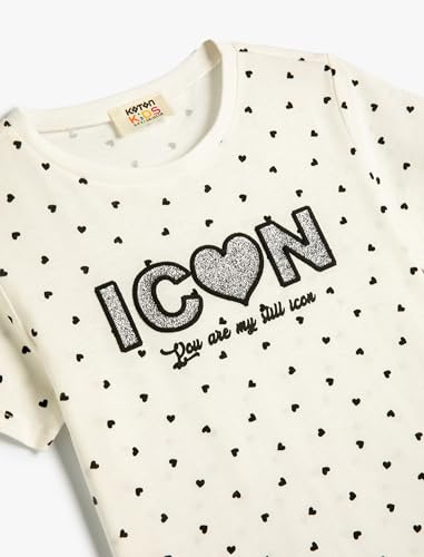 KOTON - KOTON Girls Heart Printed Glittery Tshirt