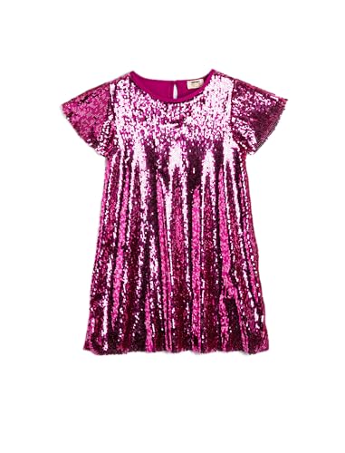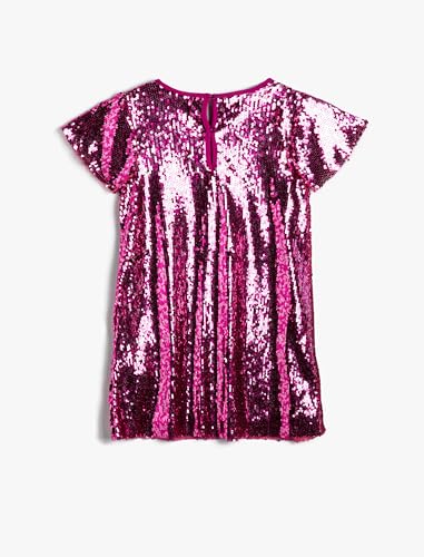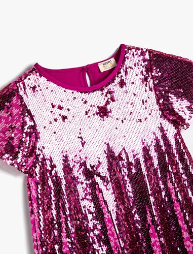 KOTON - فستان بأكمام قصيرة ورقبة دائرية مزين بالترتر للعام الجديد للبنات بعمر 7/8 سنوات من كوتون، أرجواني