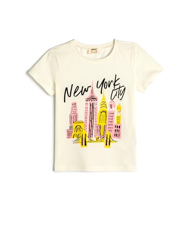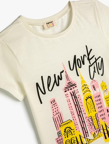 KOTON - KOTON Girls New York City Printed Short Sleeve Tshirt