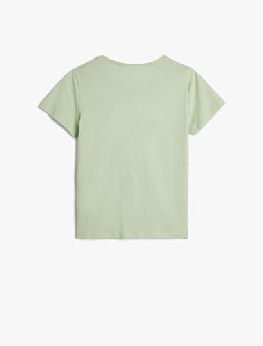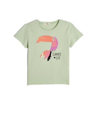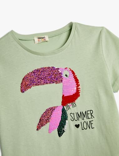 KOTON - تي شرت قطن عصري بتصميم ببغاء مزين بالترتر بأكمام قصيرة ورقبة دائرية ضيقة للبنات من كوتون (عبوة من قطعة واحدة)