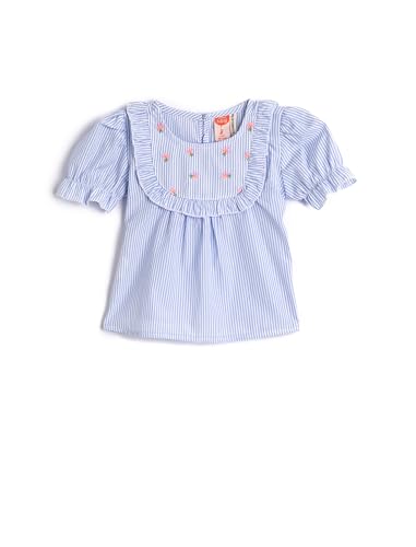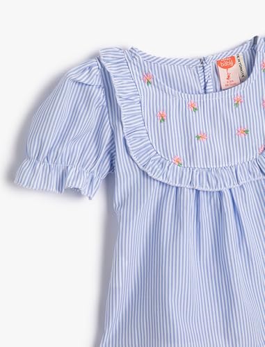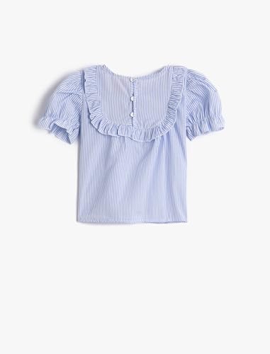 KOTON - KOTON Girls Ruffle Short Puff Sleeve Round Collar Flower Embroidered Blouse