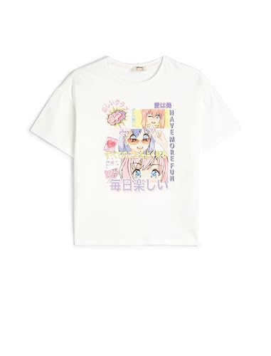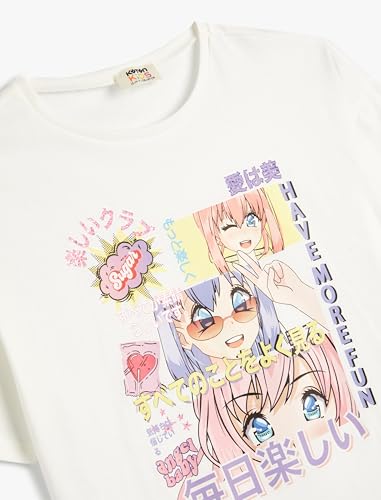 KOTON - تيشرت قطن حديث بأكمام قصيرة ورقبة دائرية ضيقة وطباعة انيمي للبنات من كوتون، (قطعة واحدة)