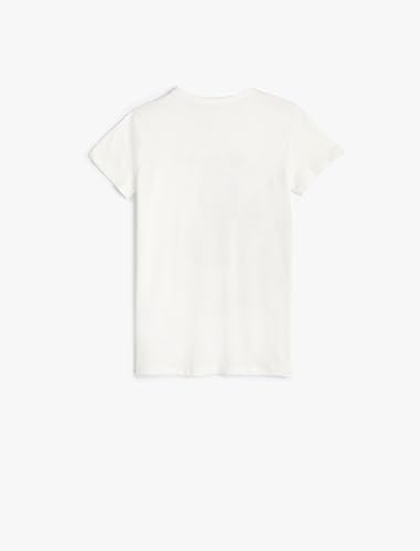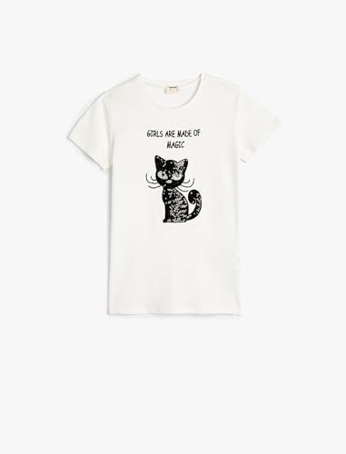 KOTON - تيشرت كلاسيكي بأكمام قصيرة ورقبة دائرية ضيقة مزين بالترتر للبنات من كوتون (قطعة واحدة)