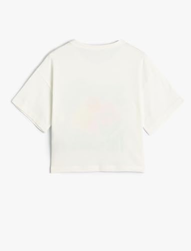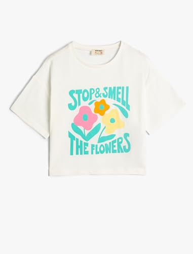 KOTON - تيشرت قطن عصري بأكمام قصيرة ورقبة دائرية ضيقة مزين بطبعة زهور للبنات من كوتون (عبوة من قطعة واحدة)