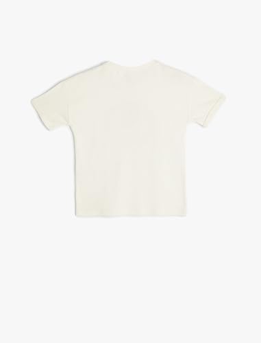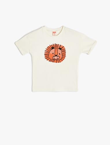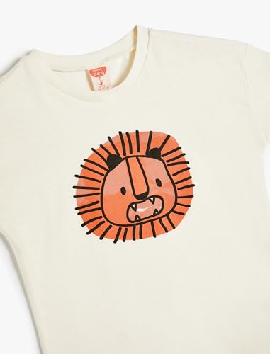 KOTON - تيشرت برقبة دائرية ضيقة مطبوع عليه أسد للأولاد بعمر 24/36 شهر من كوتون، لون 010 اكرو