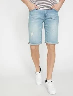 KOTON - شورت جينز تشينو ممزق بأزرار وجيب للرجال من كوتون، مقاس كبير