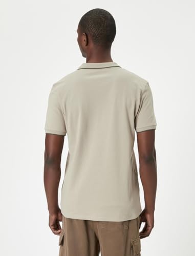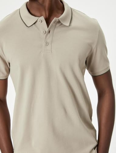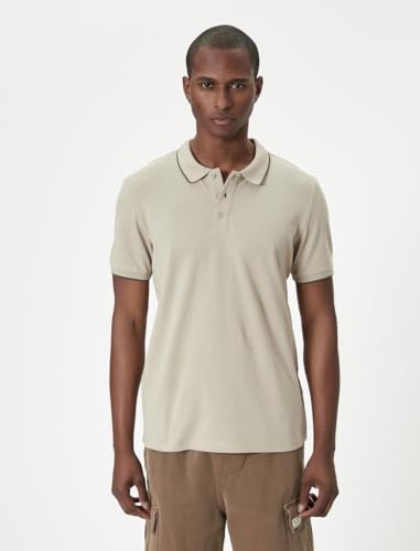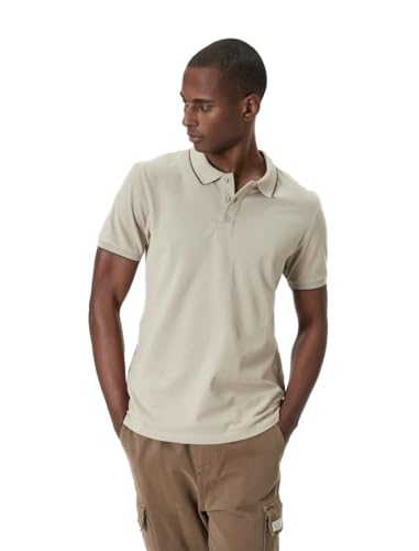 KOTON - تيشرت بقصة ضيقة وقبة بولو للرجال من كوتون، مقاس L، لون بيج