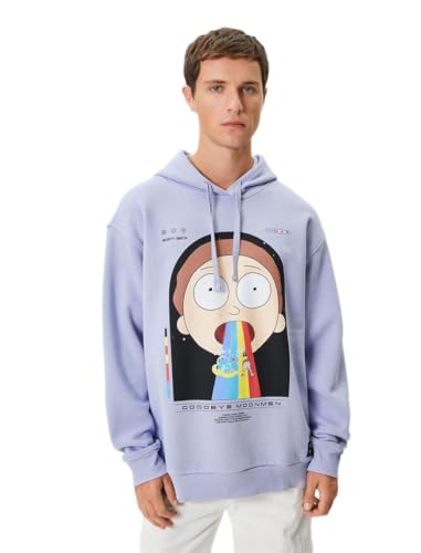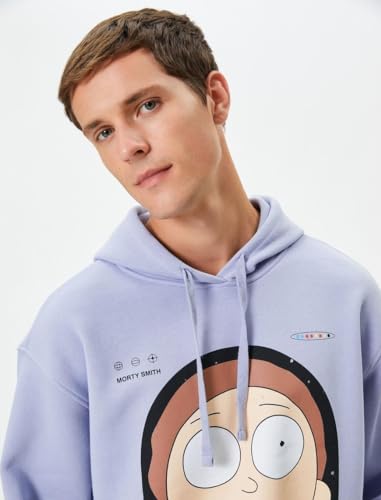 KOTON - هودي رجالي مطبوع عليه ريك آند مورتي بقصة مريحة من كوتون، مقاس M - بنفسجي فاتح