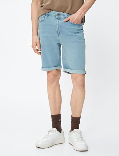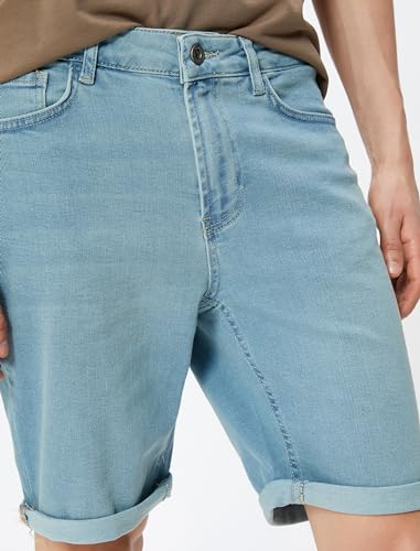 KOTON - شورتات جينز برمودا بقصة ضيقة سليم فت ومطوية وأزرار للرجال من كوتون