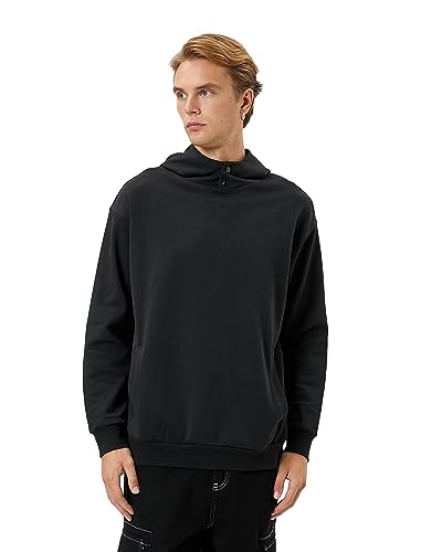 KOTON - KOTON mens High Neck Pocket Detail Snap Buttoned Hoodie