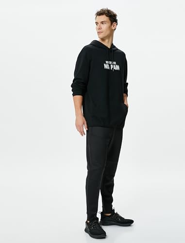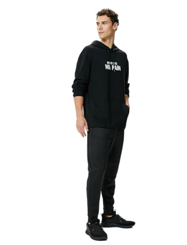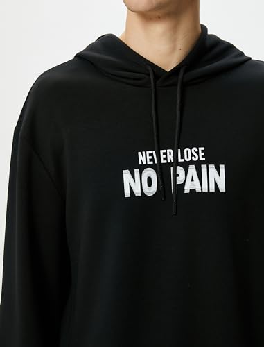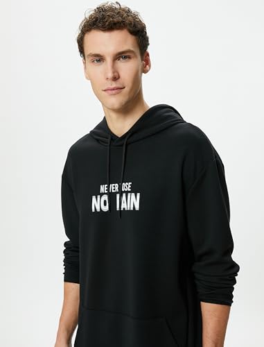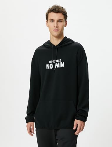 KOTON - KOTON mens Kangaroo Pocket Slogan Printed Long Sleeve Oversized Hoodie (pack of 1)