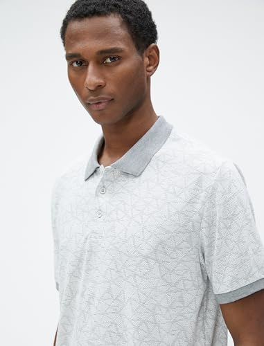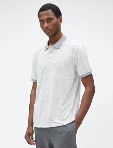 KOTON - KOTON mens Polo Neck Buttoned Ethnic Printed Slim Fit Short Sleeve Tshirt