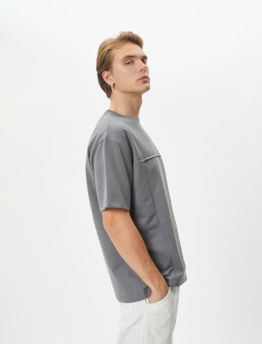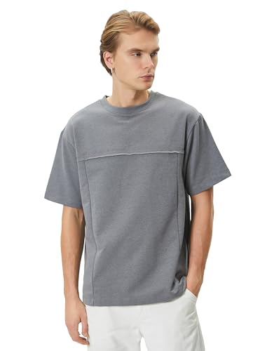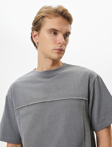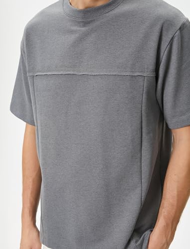 KOTON - KOTON mens Seam Detail Crew Neck Short Sleeve Oversized Tshirt
