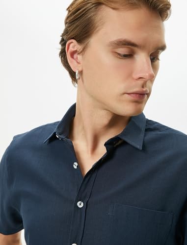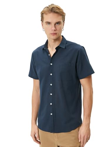KOTON - KOTON mens Slim Fit Short Sleeve Classic Neck Buttoned Pocket Detail Shirt