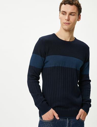 KOTON - KOTON mens Slim Fit Textured Crew Neck Basic Knitwear Sweater