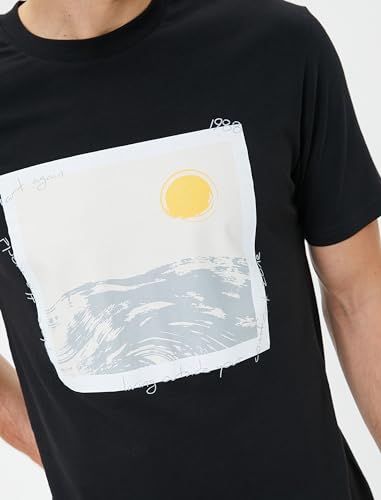 KOTON - تيشرت رياضي كلاسيكي برقبة دائرية ضيقة مطبوع عليه شعار للرجال (عبوة من قطعة واحدة) من كوتون