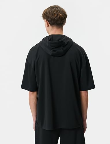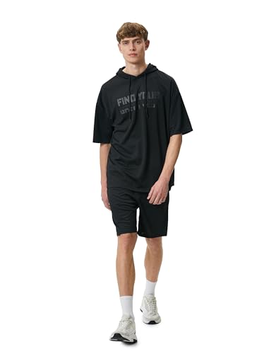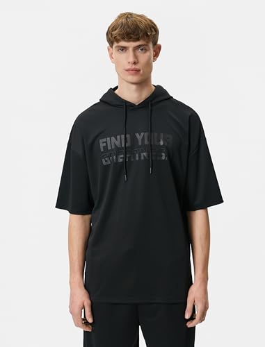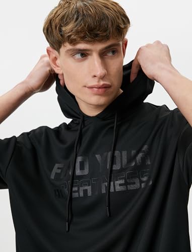 KOTON - KOTON mens Slogan Printed Short Sleeve Hooded Sport Tshirt