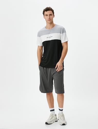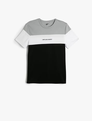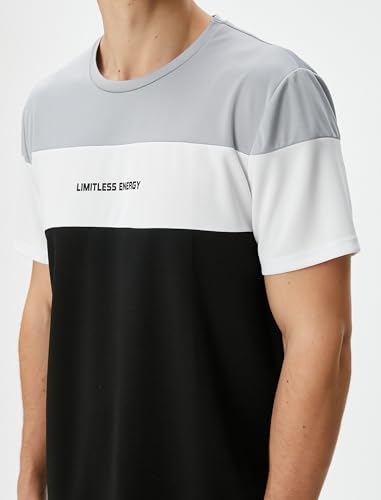 KOTON - KOTON mens Sports Color Block Short Sleeve Crew Neck Printed Tshirt