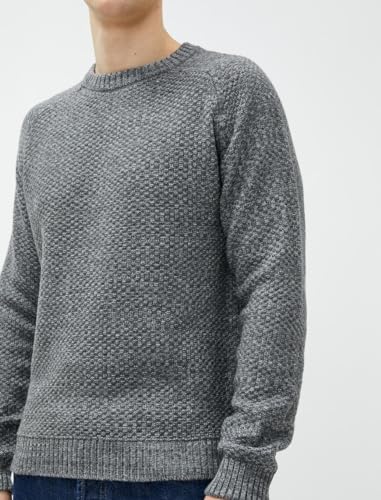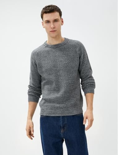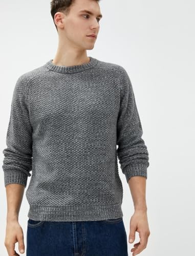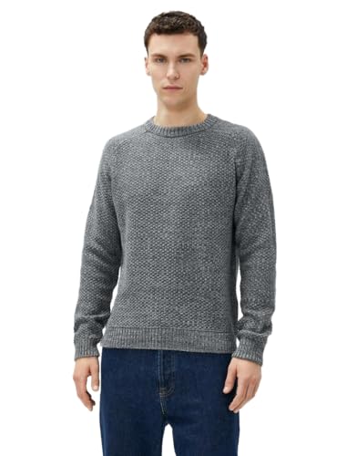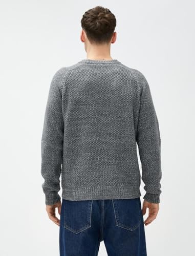KOTON - سويتر منسوج برقبة دائرية ضيقة من قماش مضلع للرجال من كوتون (عبوة من قطعة واحدة)