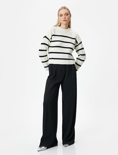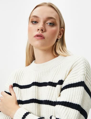 KOTON - بلوفر من كوتون برقبة دائرية للنساء، تصميم عادي مصنوع من الأكريليك، لون أزرق مارين، مقاس صغير
