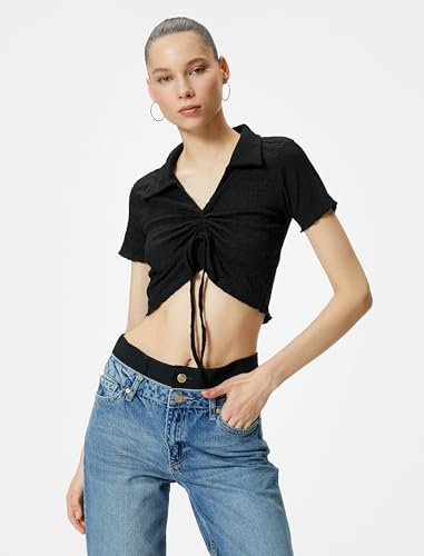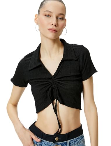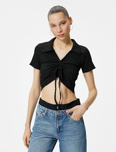 KOTON - تيشرت قصير برقبة بولو للنساء من كوتون