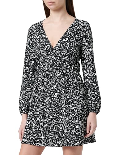 KOTON - فستان قصير بنمط مشجر وأكمام قصيرة ورقبة دائرية للنساء من كوتون