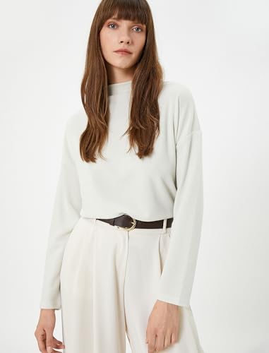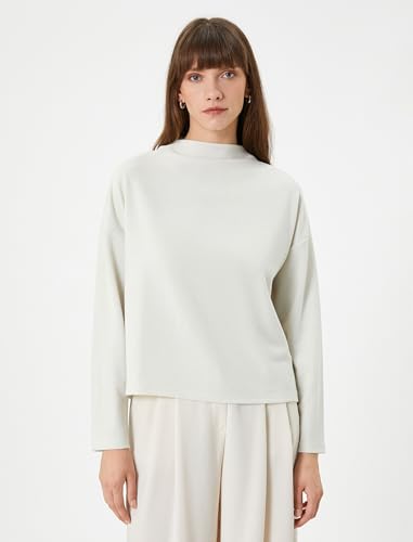 KOTON - بلوفر للنساء من كوتون لامع برقبة عالية وأكمام طويلة