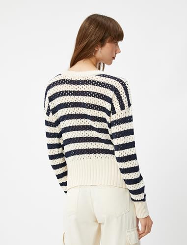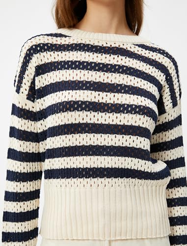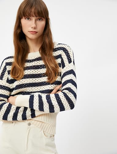 KOTON - سويتر كبير الحجم برقبة دائرية ضيقة وأكمام طويلة للنساء من كوتون