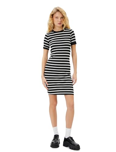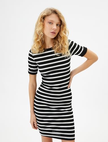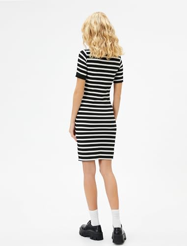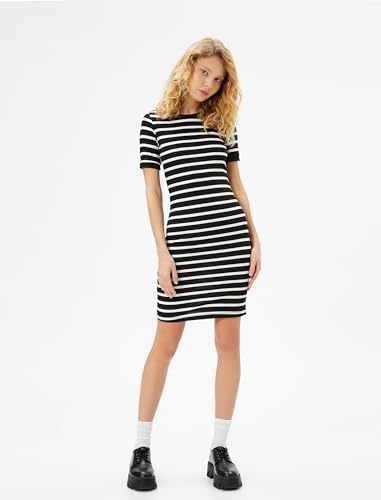 KOTON - فستان قصير ضيق مضلع بأكمام قصيرة ورقبة دائرية ضيقة للنساء من كوتون (عبوة من قطعة واحدة)