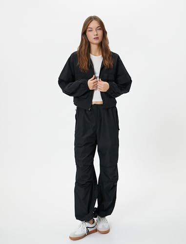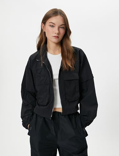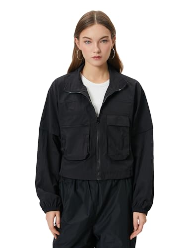 KOTON - جاكيت باراشوت بسوستة للإغلاق ورقبة عالية وجيوب مزودة بأغطية للنساء من كوتون