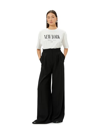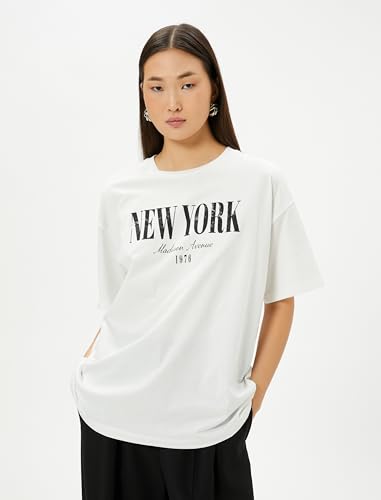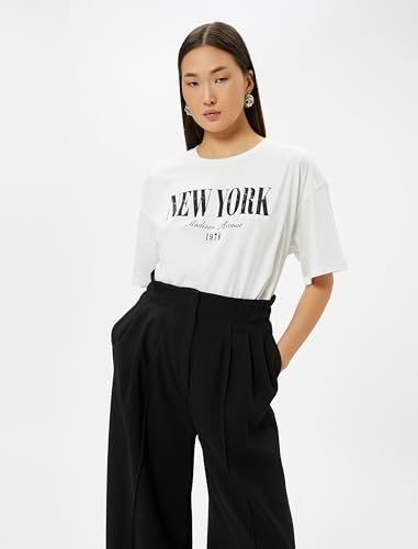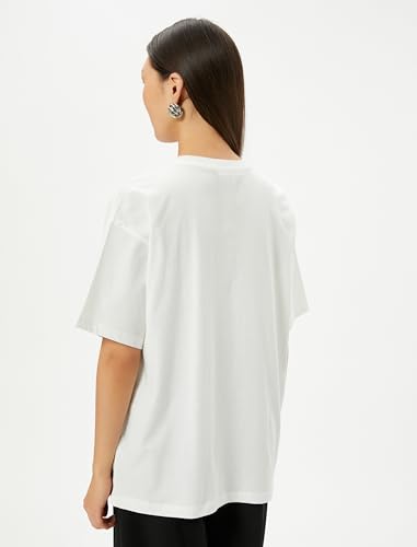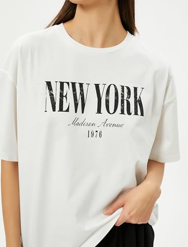 KOTON - تيشرت بقصة عادية وأكمام قصيرة ورقبة دائرية ضيقة بطبعة للنساء من كوتون