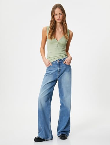 KOTON - توب كات برقبة على شكل حرف V وأزرار للنساء من كوتون