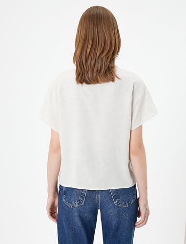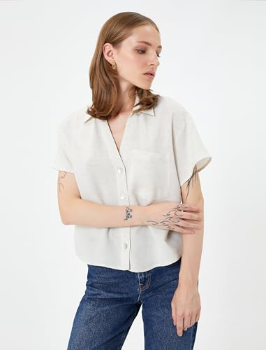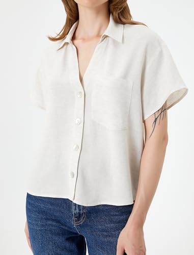 KOTON - قميص للنساء من مزيج الفسكوز مصمم برقبة كلاسيكية وأزرار وجيب وأكمام قصيرة من كوتون، 36، بيج
