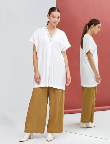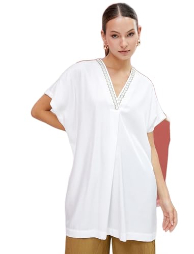 تونيك طويل بأكمام قصيرة ورقبة على شكل حرف V