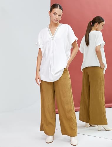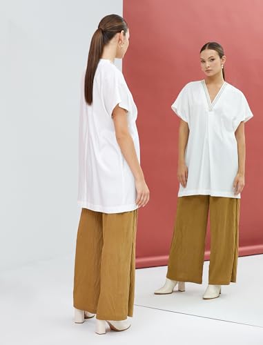 KOTON - بلوزة طويلة بأكمام قصيرة ورقبة على شكل حرف V للنساء من كوتون (عبوة من قطعة واحدة)