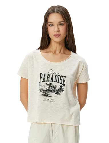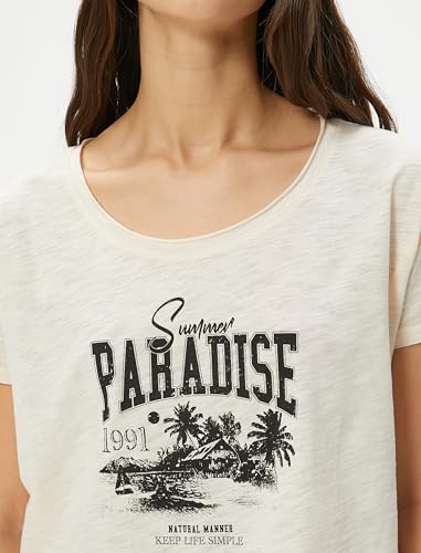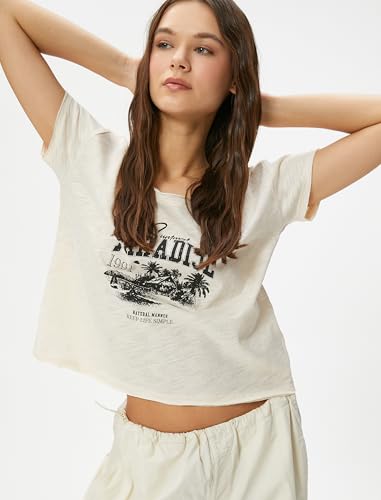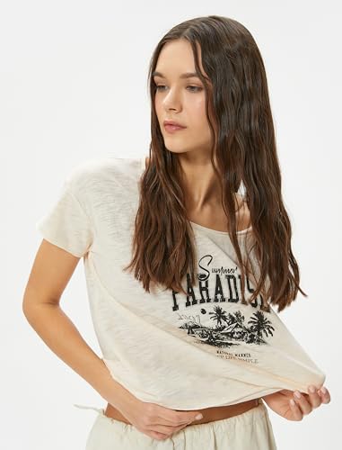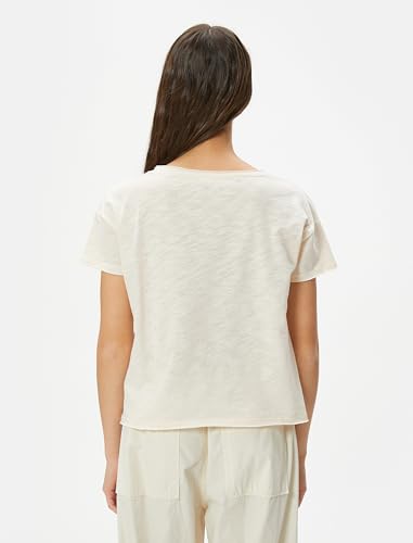 KOTON - تيشرت قطن كلاسيكي بأكمام قصيرة ورقبة واسعة للنساء من كوتون (عبوة من قطعة واحدة)