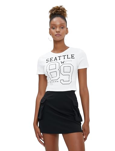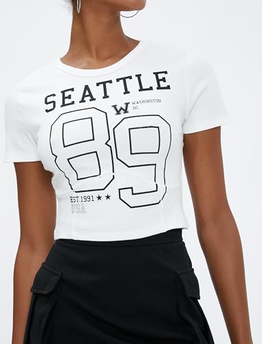 KOTON - KOTON womens College Printed Crew Neck Slim Fit Tshirt