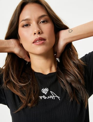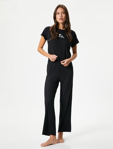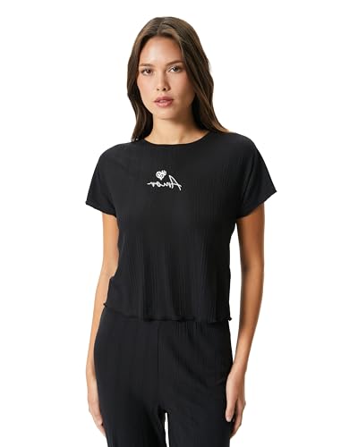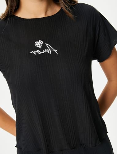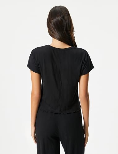 KOTON - تيشرت بيجامة للنساء برقبة دائرية ضيقة وأكمام قصيرة من كوتون (قطعة واحدة)