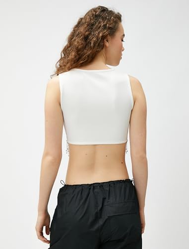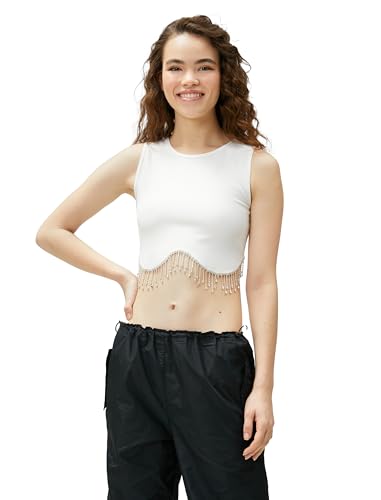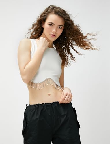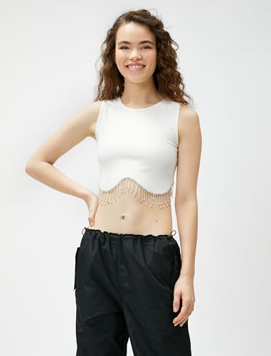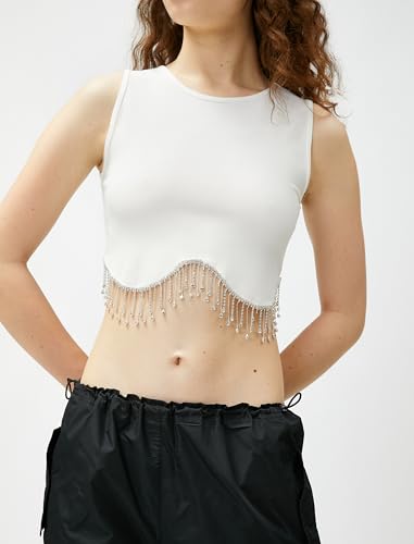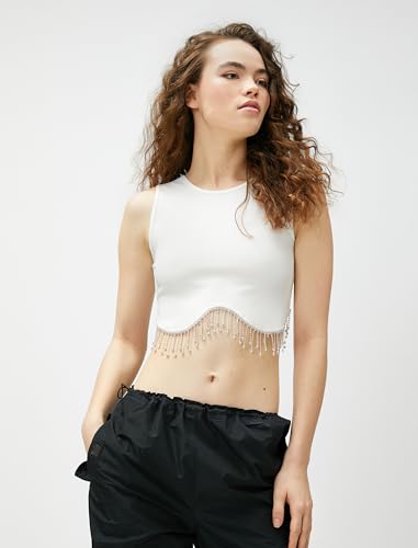 KOTON - KOTON womens Crop Drop Glitz Stone Detail Crew Neck Tanktop