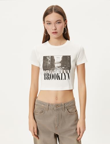 KOTON - تيشرت قصير للنساء من كوتون، بتصميم مطبوع بطابع المدينة وبأكمام قصيرة ورقبة دائرة ضيقة، (عبوة من قطعة واحدة)