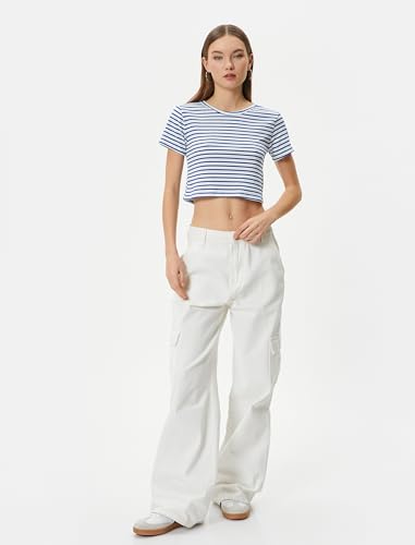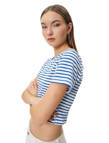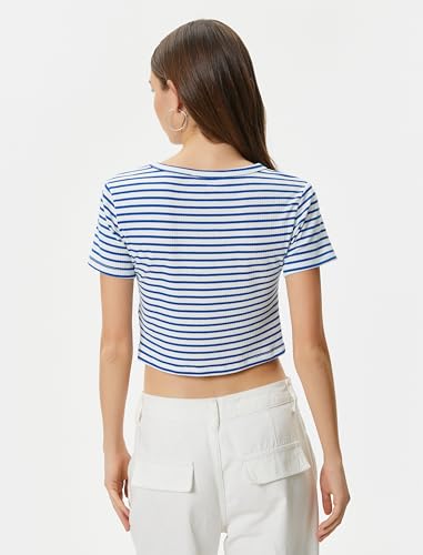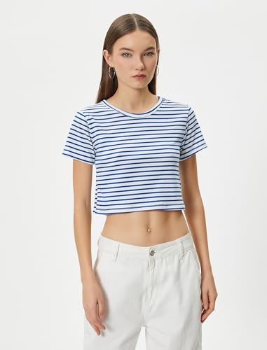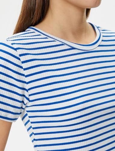 KOTON - تيشرت قصير مضلع بقصة ضيقة سليم فت وأكمام قصيرة ورقبة دائرية ضيقة من القطن الكلاسيكي للنساء من كوتون (عبوة من قطعة واحدة)