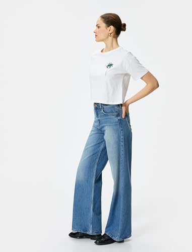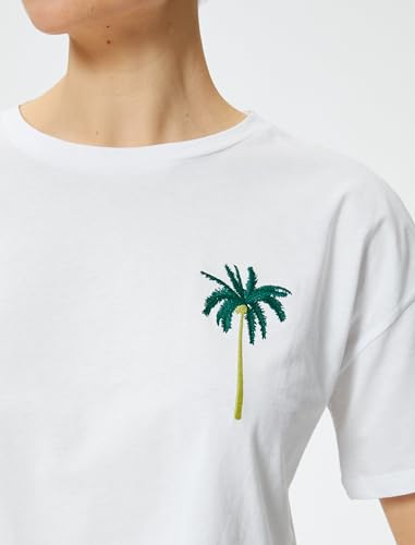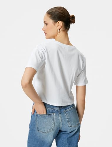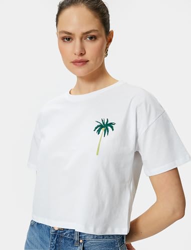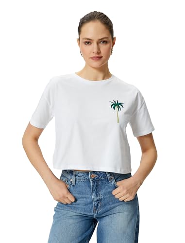 KOTON - KOTON womens Embroidered Crew Neck Short Sleeve Crop Tshirt