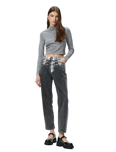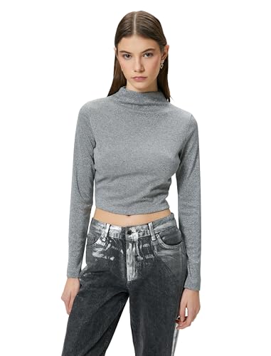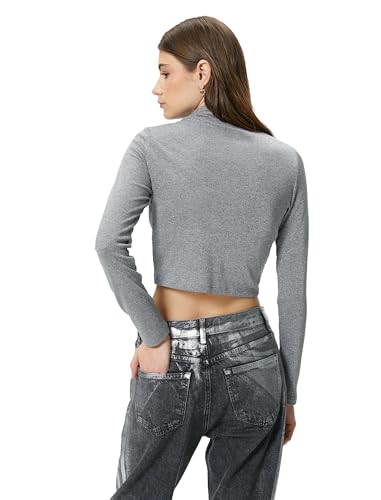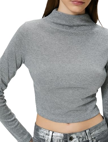 KOTON - KOTON womens Gleamy Metallic Turtle Neck Slim Fit Long Sleeve Tshirt