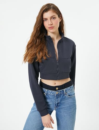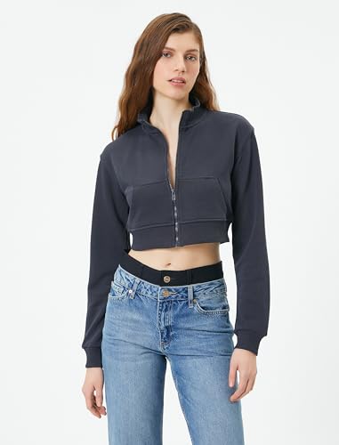 KOTON - KOTON womens High Neck Kangaroo Pocket and Zipper Detail Sweatshirt