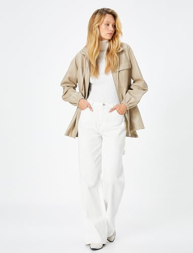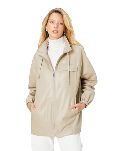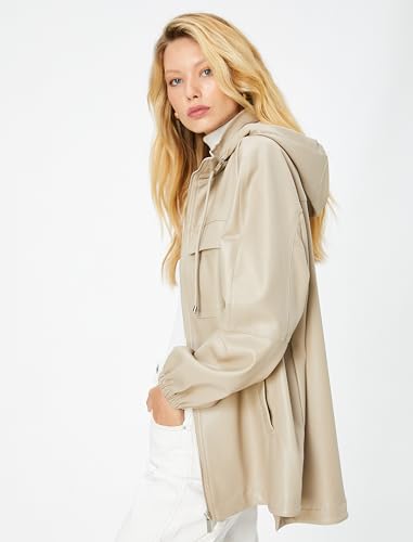 KOTON - KOTON womens Hooded Detail Faux Leather Raincoat