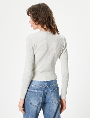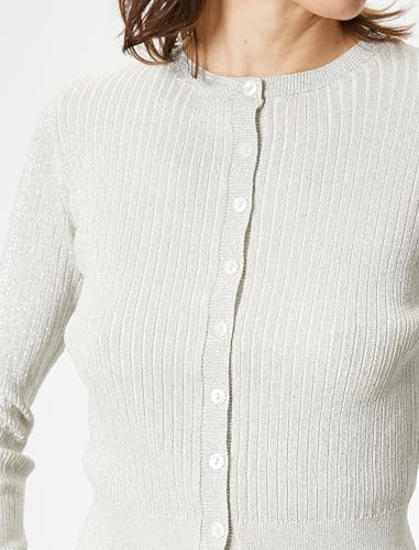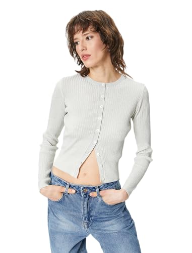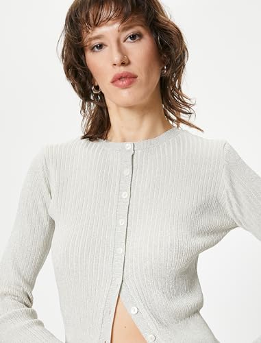 KOTON - كارديجان من كوتون بياقة دائرية للنساء، قصة عادية وأكمام طويلة، محبوك، لون فضي، مقاس صغير
