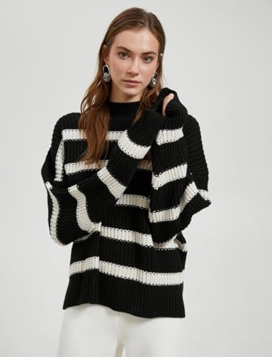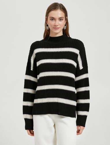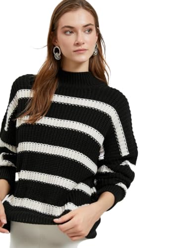 KOTON - سترة بولوفر من كوتون بياقة نصف تيرتل نك للنساء، قصة عادية، لون إيكرو، مقاس كبير