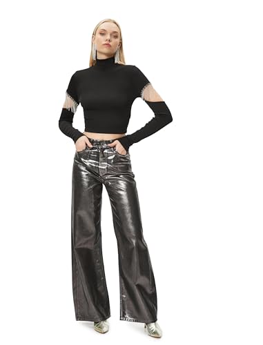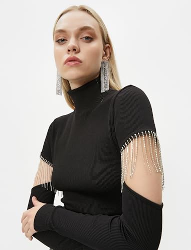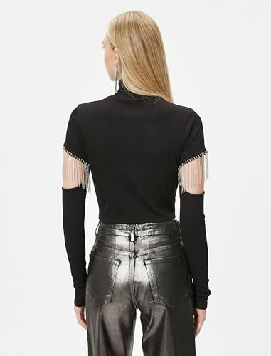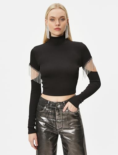 KOTON - KOTON womens Long Sleeve Cut Out and Accessory Detail Crop Tshirt