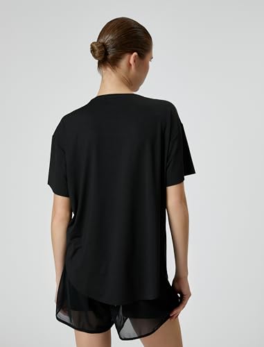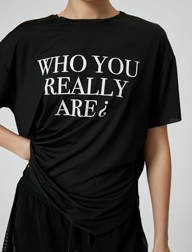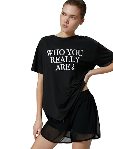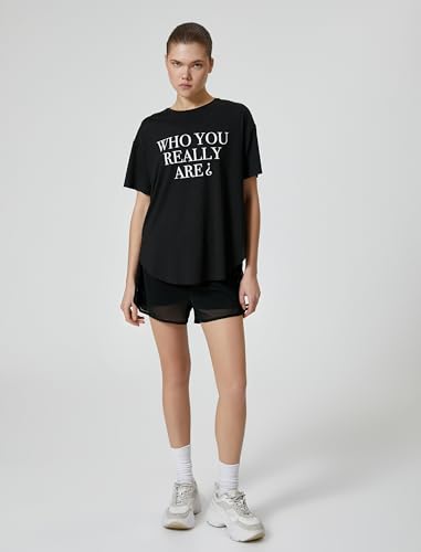 KOTON - KOTON womens Oversized Short Sleeve Slogan Printed Crew Neck Sport Tshirt